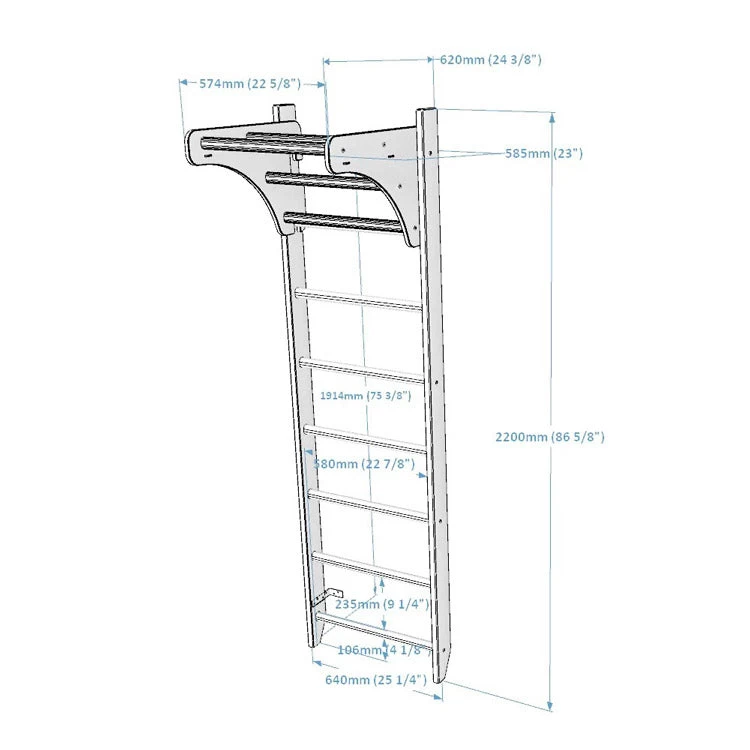 - Assembly kit (does not include wall mounting set, as its type depends on the type of wall which the swedish ladder will be attached to).