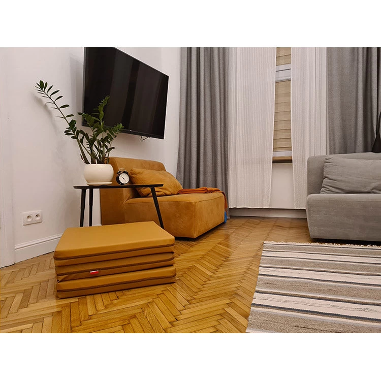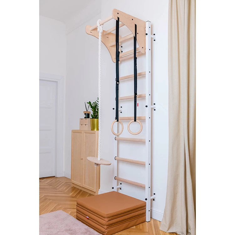 The mat contains eco materials only and does not have a smell. It provides safety during play and exercise on the BenchK wall bar. Its neutral color will perfectly match your child’s bedroom. It can also be used as a seat for a child. When not in use, it can be placed on top of the pull-up bar to save space.