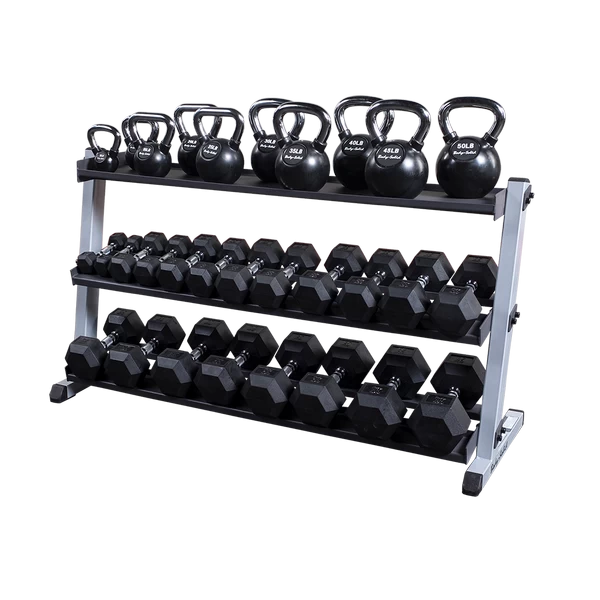 Shown with optional third tier #GDRT6: allows storage of up to 70 lb. dumbbell pairs.
