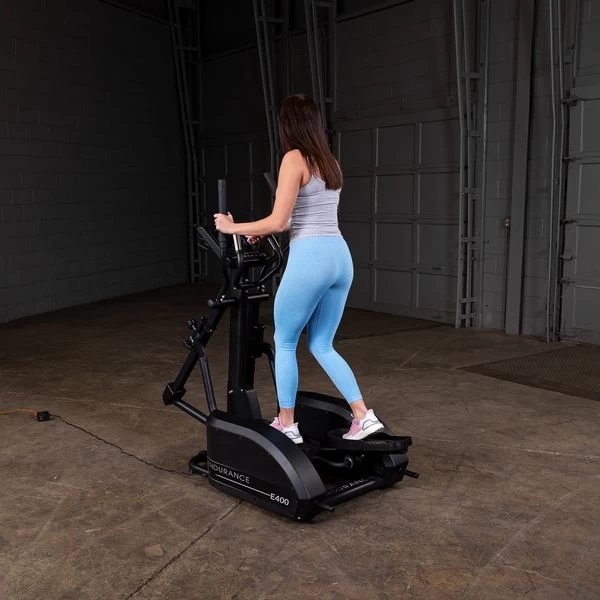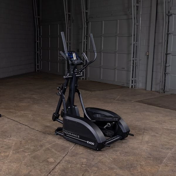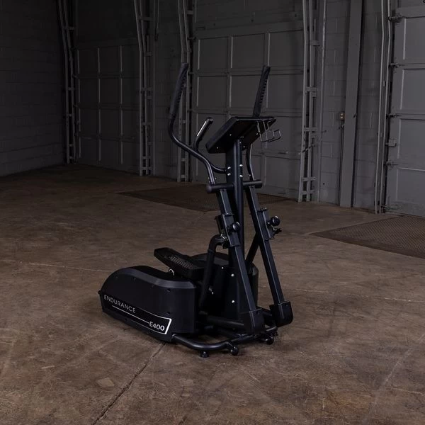 The Endurance by Body-Solid E400 Elliptical Trainer is built with a patented center drive design and a low center of gravity providing a smooth and quiet cardio workout.