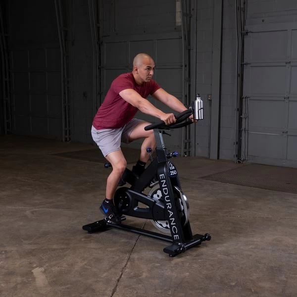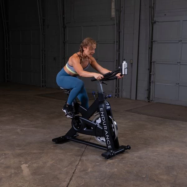 Designed to perform like a road bike, the ESB250 is for your home or a heavy use group facility. The ESB250 provides uncompromising quality and function at an amazing price. The 44-pound flywheel is precisely balanced for the smoothest action available. The oversized 2”x5” steel frame is rock solid even during extreme workouts. The single motion safety stop is easy to engage. The top down resistance mechanism has a leather pad for increased durability. The ESB250 provides road bike style seat and dual sided pedals for the bike enthusiast. Micro two-way adjustable handlebars and seat pad ensures the exact fit for any size user. Transport wheels provide easy mobility.