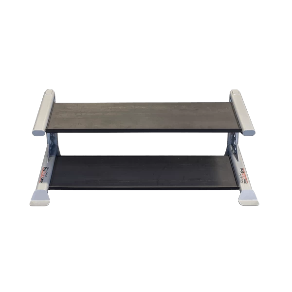Features 2 flat shelves to fit hexagon or round dumbbells. Fits 5-50 (pair) of either SDX or SDR hex dumbbells, or 5-40 (pairs) of SDP round dumbbells.