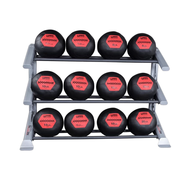 The SDKRMB Medicine Ball shelf can hold a variety of BSTMB Medicine Balls, BSTDMB Dul-Grip Medicine Balls, BSTSMB Soft Medicine Balls or BSTHB Slam Balls. The SDKRMB shelf has a width of 59″. Use the chart below to determine the approximate amount of medicine balls each shelf can hold.