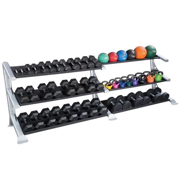 Perfect for the storage needs of any facility, the new SDKR1000 storage rack offers unparalleled flexibility for storage of Dumbbells, Kettlebells and Medicine Balls. Mix and match tiers and shelves to create the perfect storage solution for any facility.