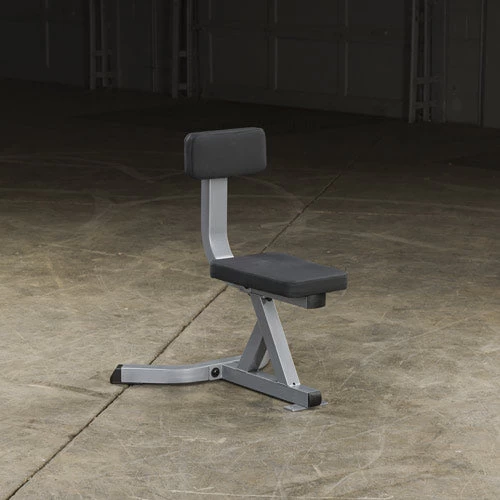 The Body-Solid Utility Stool is a rock-solid tool for performing seated exercises such as shoulder presses, triceps pullovers, French curls, concentration curls, wrist curls and more. It works great in a rack for barbell exercises or on its own with dumbbells. The GST20 is designed to align your body to perfect seated posture and reduce stress on your back without restricting movement. Both seat pads are mounted to the heavy-duty 2″ x 2″ and 2″ x 3″ mainframe, which is constructed from 12-gauge high-tensile strength steel for maximum strength and features an extra-wide base that ensures lateral stability. When it comes to padding, you can’t beat BodySolid’s extra thick, double stitched DuraFirmTMÂ upholstery. It’s tear resistant and guaranteed to provide a lifetime of comfort and support without ever bottoming out. Whether it is in a home or commercial setting, the GST20 is the best seat in the house!