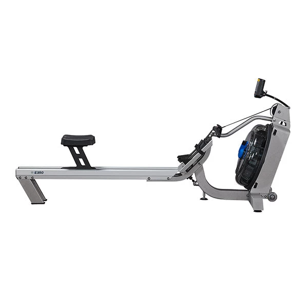The E350 (formerly E316) Fluid Rower is FDF’s champion indoor rower designed for the health club or commercial gym environment. The unique direct drive design of this fluid rower provides a close emulation to real on-water rowing, with the rider experiencing the sight, sound, and feel of the water churning through the tank. Dual seat rails provide enclosed roller surfaces for a cleaner, smoother and safer action. With unrivaled natural catch and resistance, the E350 Fluid Rower has an angled tank with straight-line configuration. Featuring FDF’s patented Variable Fluid innovation for instant adjustable resistance at the turn of a lever, the twin tank system delivers a massive range of resistance to suit every rower. The E350 Fluid Rower has a small footprint with easy mobility and compact storage, making it ideal for group classes, cardio areas and quality home gyms.