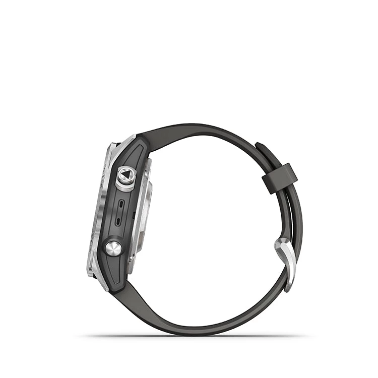fēnix® 7S Pro Solar is the ultimate multisport GPS smartwatch optimized for smaller wrists and designed to perform all day, every day. Get weeks of battery life with the Power Glass™ solar charging lens. Meet any challenge with advanced training features such as hill score, which measures your climbing performance over time, and real-time stamina updates to gauge your stamina potential. For a more complete picture of your health, training and recovery, tap into 24/7 health and wellness monitoring with advanced sleep tracking, HRV status, Pulse Ox and more (this is not a medical device, and data presented is intended to be a close estimation of metrics tracked; Pulse Ox not available in all countries). When the sun sets, use the LED flashlight to stay visible or find your way. Download TopoActive maps from around the world to keep your explorations on track. Navigate on the slopes with 2,000 preloaded ski resort maps worldwide. Adventure far off the grid with up to 14 days of battery life in smartwatch mode with solar charging in 3 hours of direct sunlight (50,000 lux) per day. Gain superior positioning accuracy while optimizing battery life, thanks to multi-band GPS with SatIQ™ technology.