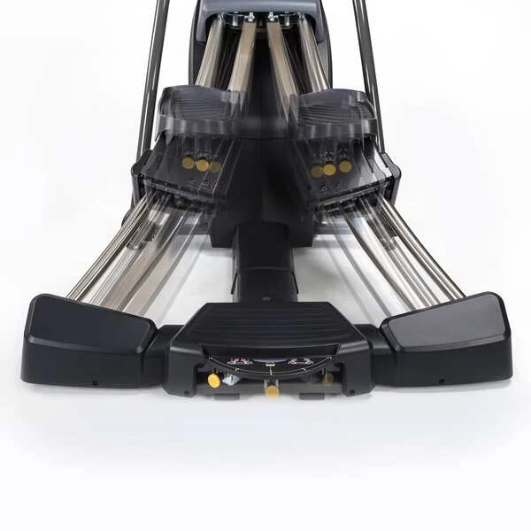 The only cross trainer that combines both linear and lateral motions, adjustable stride width, variable foot position and unique handle positioning for an unprecedented workout of infinite variety.