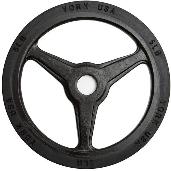 Inspired by the YORK® ISO-Grip Plates, the YORK® Bumper Grip plates embrace the maneuverability of the three-grip design. The steel composite hub fortifies the structural integrity of the plates. The rim of the plate is surrounded by high quality rubber ensuring the functionality and floor protection expected from a bumper plate. Cast aluminum training plates are available in 5 LBS and 10 LBS increments measuring the same standard diameter as the 25, 35 and 45 lbs plates.