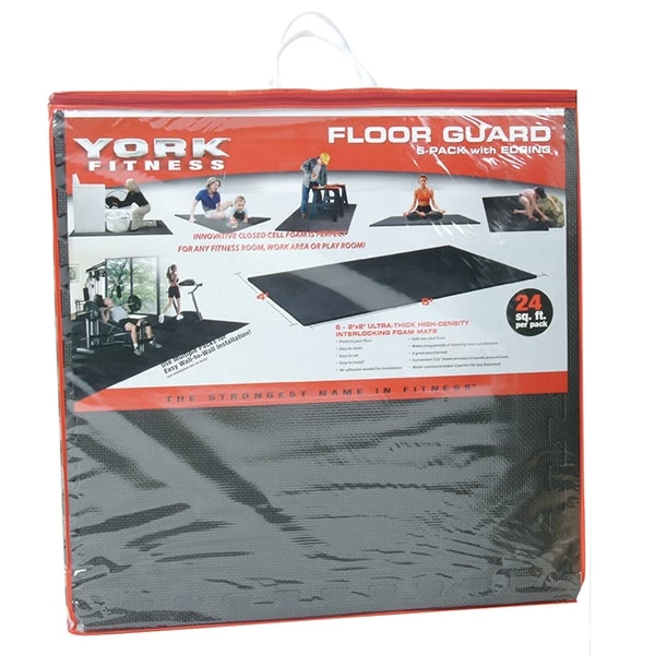 2′ x 2′ x 12mm YORK Floorguard with Edging Shrink Wrap Package – Pack of 4 – Black