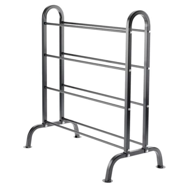 This horizontal rack stores a dozen or more York medicine balls depending on the combination of sizes. The double sided design allows for easy access by multiple users and the attractive black powder coat finish compliments most workout spaces.